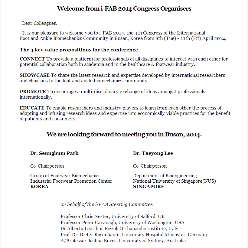 Welcome From i-FAB 2014 Congress Organisers (2013-12-10)