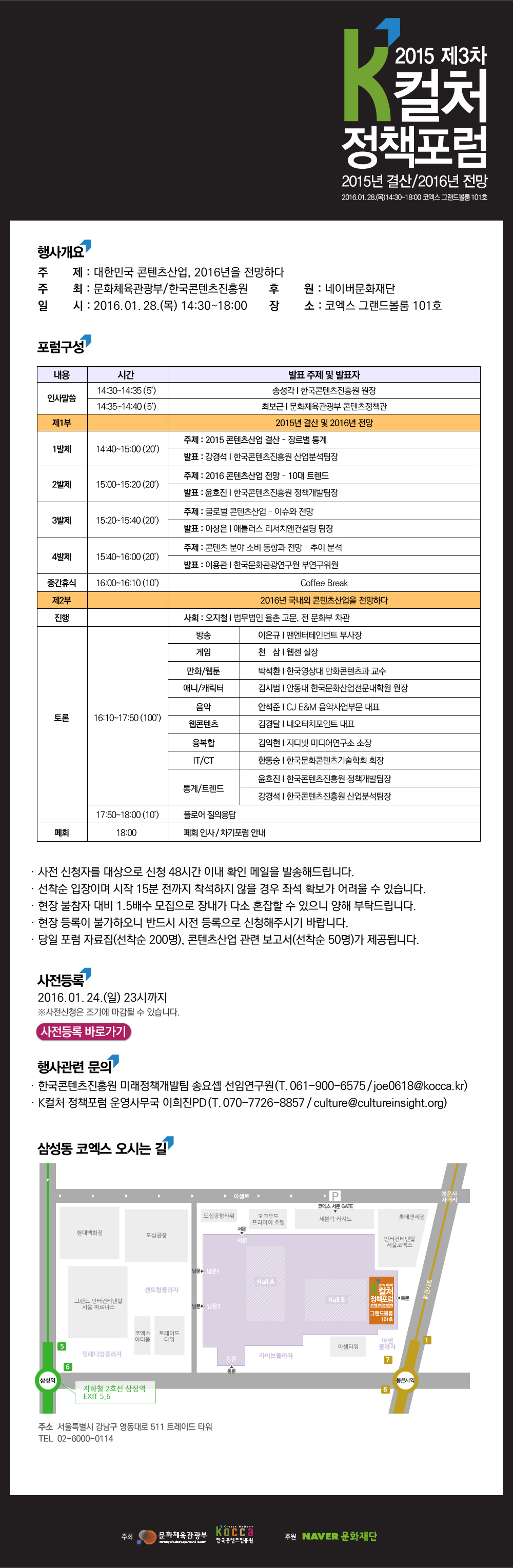 한국컨텐츠진흥원, 2015년 결산 2016년 전망 '제 3차 K-컬처 정책포럼' 참가자 모집
