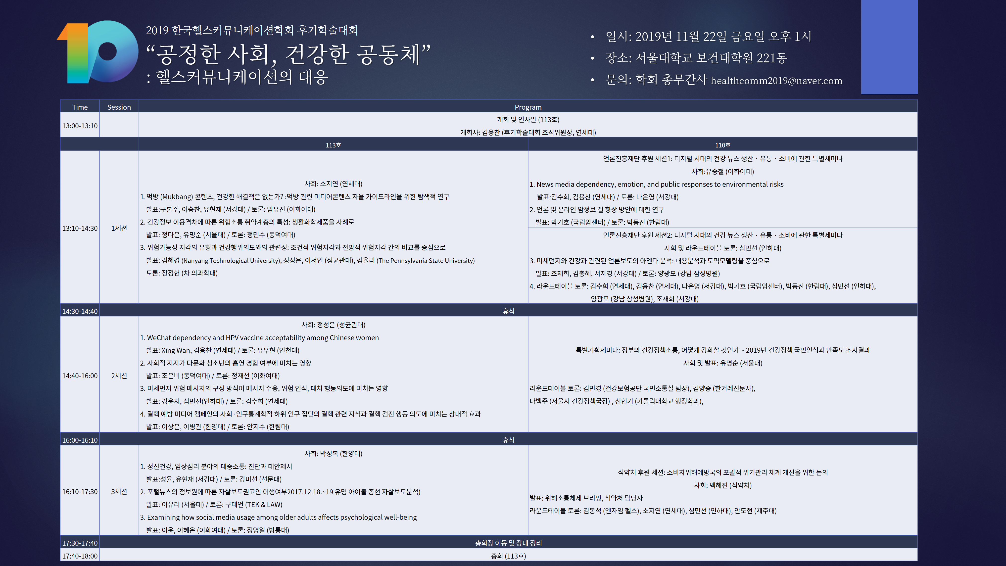 l 후기학술대회 장소 서울대학교 보건대학원  221