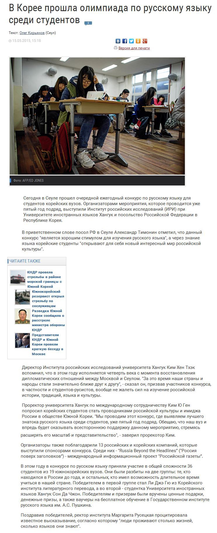 [언론보도]В Корее прошла олимпиада по русскому языку среди студентов(RG.RU)