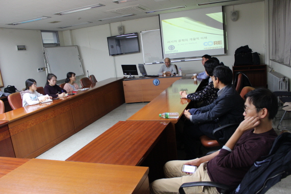 한국외국어대학교 러시아연구소 인문한국(HK) 연구사업단은 러시아연방 인문공간 연구의 일환으로 지난 10월 27일 금요일 서울캠퍼스 국제관 203호에서 러시아 상트페테르부르크국립대학교 동방학부 한국학과 교수이자 학제간한국학연구소 소장인 세르게이 쿠르바노프 교수를 초청하여 ‘러시아인이 바라보는 러시아 문학’이라는 주제로 간담회를 진행했다. 이 자리에는 한국외대 러시아연구소 연구진과 노어과 학생, 외부 손님 등 18명이 참석하여 러시아 문학에 관한 쿠르바노프 교수의 견해를 듣고 그에 관해 질의응답 시간을 가졌다.