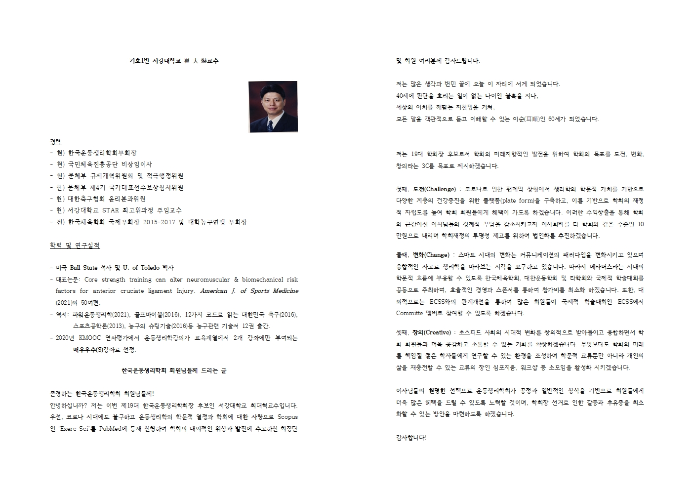 발전하는 한국운동생리학회 19대 회장 선거를 위해 소중한 한 표를 행사해 주시기 바랍니다.