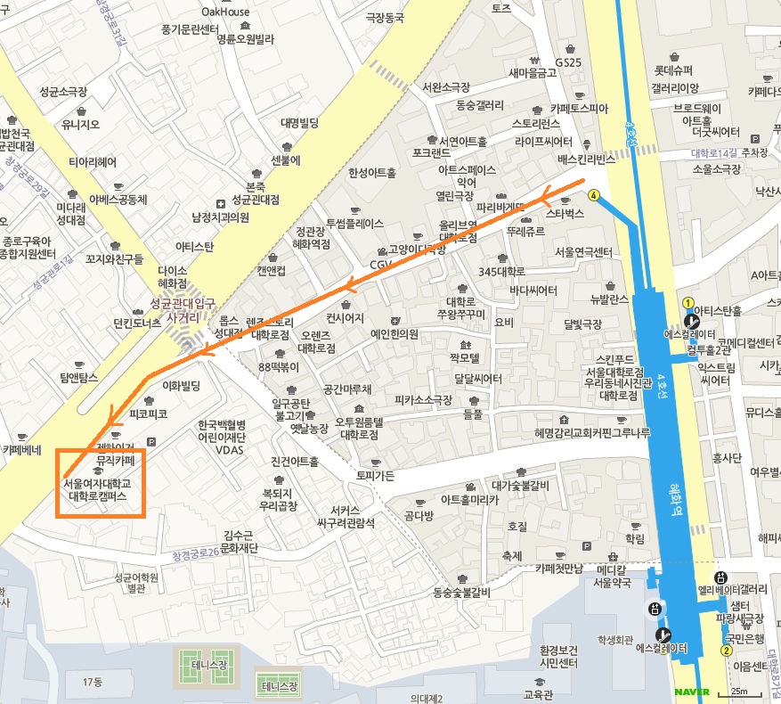 4호선 혜화역 4번 출구(성대입구)에서 도보 8분 거리