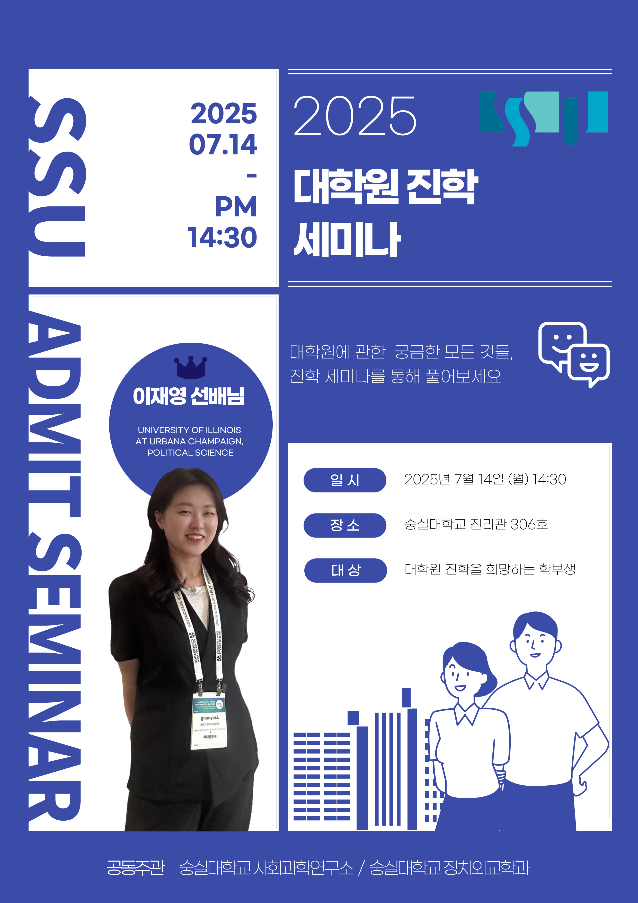 숭실대학교 사회과학연구소와 정치외교학과가 공동으로 주관하여 대학()생을 대상으로 대학원 진학을 위한 세미나를 개최하오니 많은 참여바랍니다.