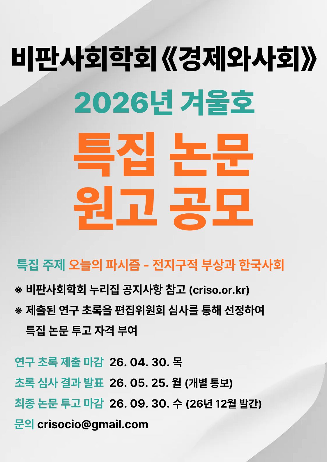 - 제출처: 경제와사회편집위원회 메일(crisocio@gmail.com)